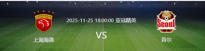 北京时间11月25日晚18:00,亚冠精英赛联赛阶段第5轮将上演一场令中国球迷无比关注的比赛,刚刚在中超斩获3连冠的上海海港坐镇主场迎战实力强劲的韩国K联赛球队首尔。