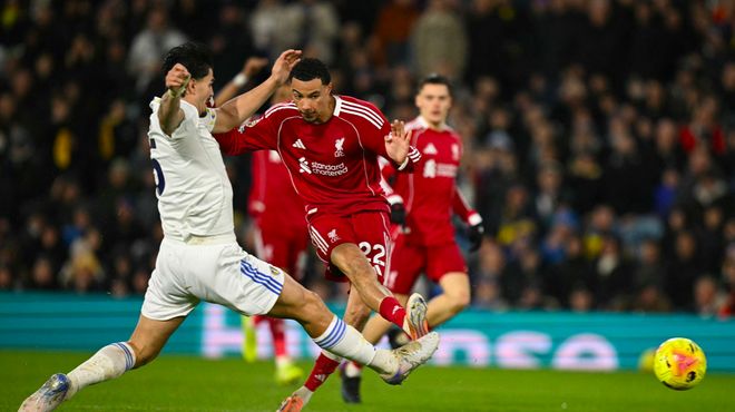 第75分钟,阿隆森突破后送上助攻,斯塔赫扳平比分。短短3分钟,利物浦连丢两球。