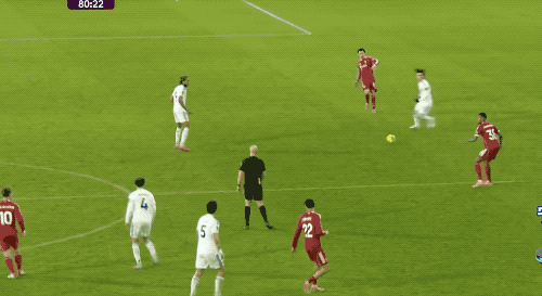 下半场开始后,场上风云突变,第48分钟,利兹联后卫罗登的横传,变成了乌龙助攻,埃基蒂克抢断后冷静晃开阿姆帕杜,打破僵局。